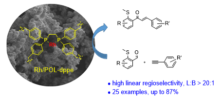 36. Porous organic polymers as heterogeneous ligands for highly selective hydroacylation.